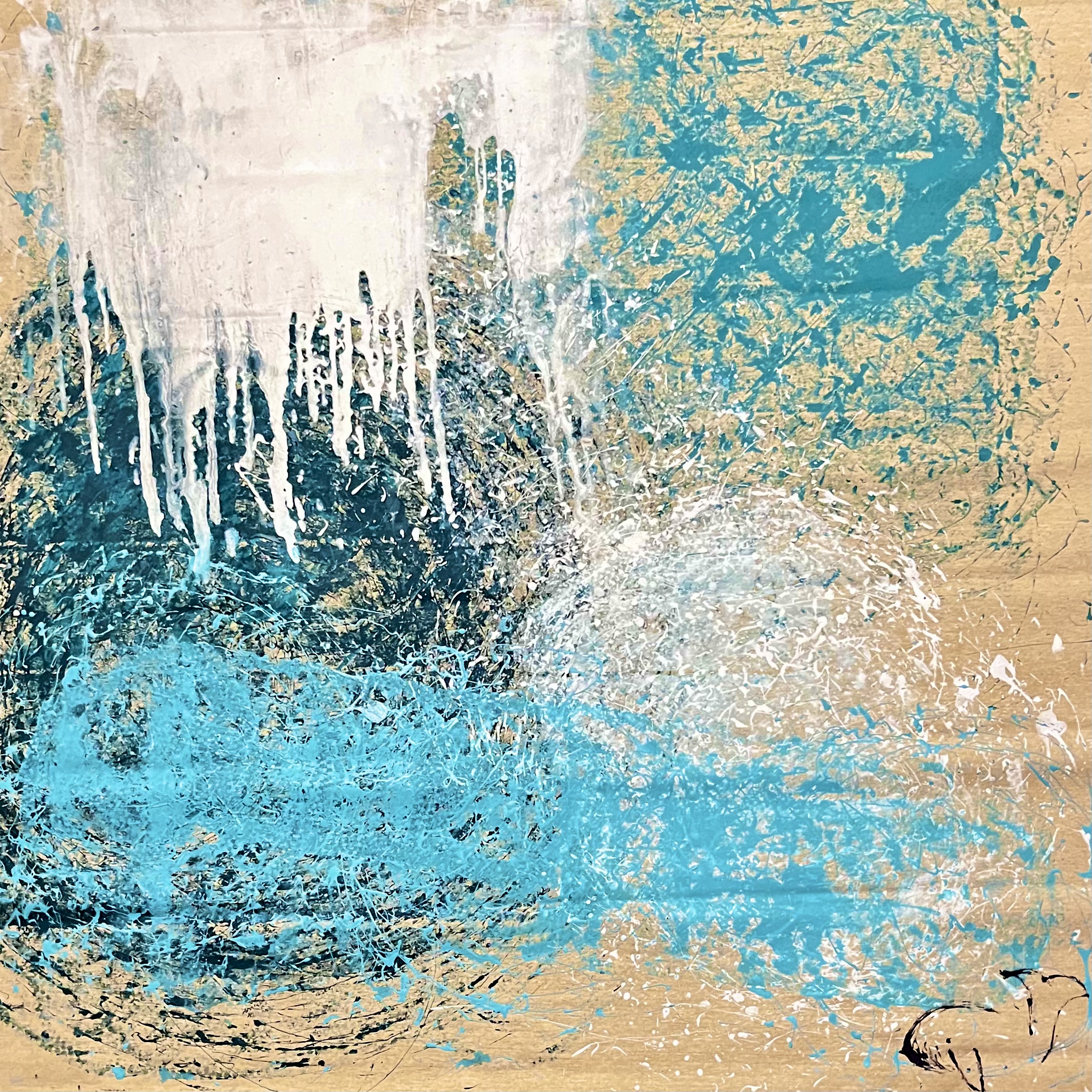 The Flood is 5th in a series of twelve pieces that illustrate what AI is, what is can help, how it can hurt, and what our world could look like if we choose to cooperate or to conflict. The works are created in a collaboration between myself and a self-modified algorithmic robot painter to show the order in chaos, and the emotional connection we can share with the nature of machination.